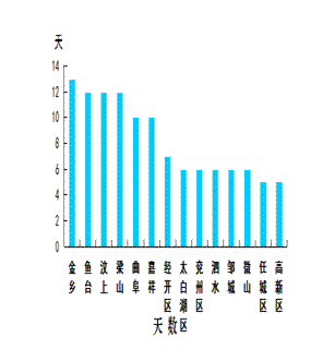 优良天最多的县(市、区)是金乡县,为13天;最少的县(市、区)是任城区和高新区,均为5天;14县(市、区)同比均恶化,恶化幅度最大的县(市、区)是兖州区,为63.3个百分点。