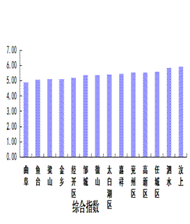 环境空气质量综合指数最好的县(市、区)是曲阜市,为4.94,最差的县(市、区)是汶上县,为5.96;同比均恶化,恶化幅度最小的县(市、区)是鱼台县,为0.6%,恶化幅度最大的县(市、区)是汶上县,为36.4%。